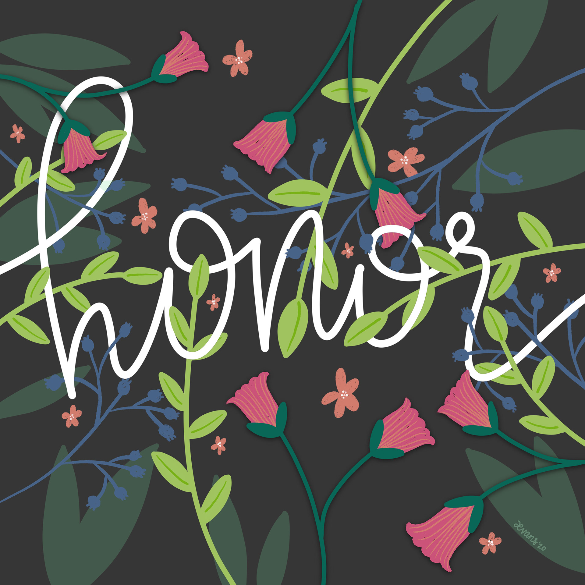 Created with the Procreate App, these are the result of a thirty-day design project based on follower-suggested words of inspiration.